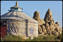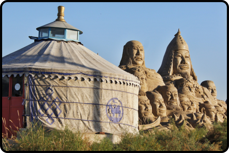 Am Parkplatz empfangen uns ein paar Statuen von Mongolen-Krieger, die einige