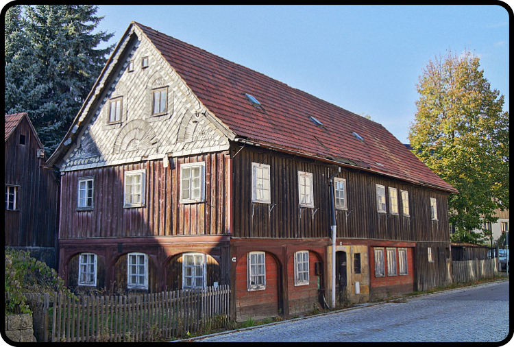 Faszinierend ist ein Umgebindehaus in der Kombination mit einer gemusterten Schiefer-Fassade.