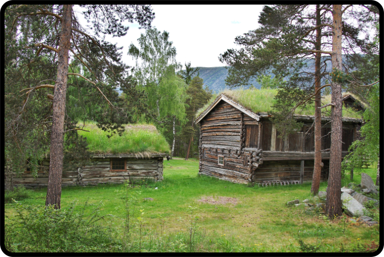 aus der Umgebung von Lom, die hier wieder aufgebaut wurden.