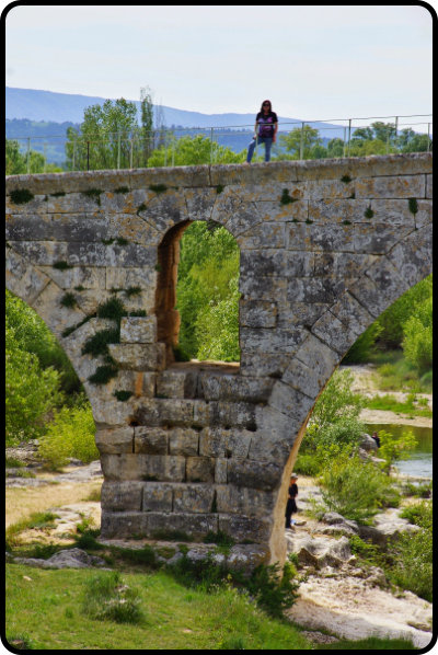 Eine Steinbogenbrücke, die bereits 3 Jahre v. Chr. Von den Römern erbaut wurde, muss man sich ansehen. Fährt man auf der D