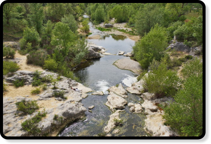 Vom Flussbett des Calavon erkennt man die Bautechnik als Keilsteingewölbe am