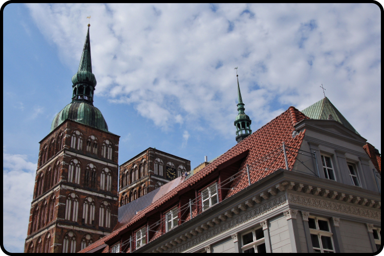 älteste der drei großen Pfarrkirchen von Stralsund. Auffällig sind die